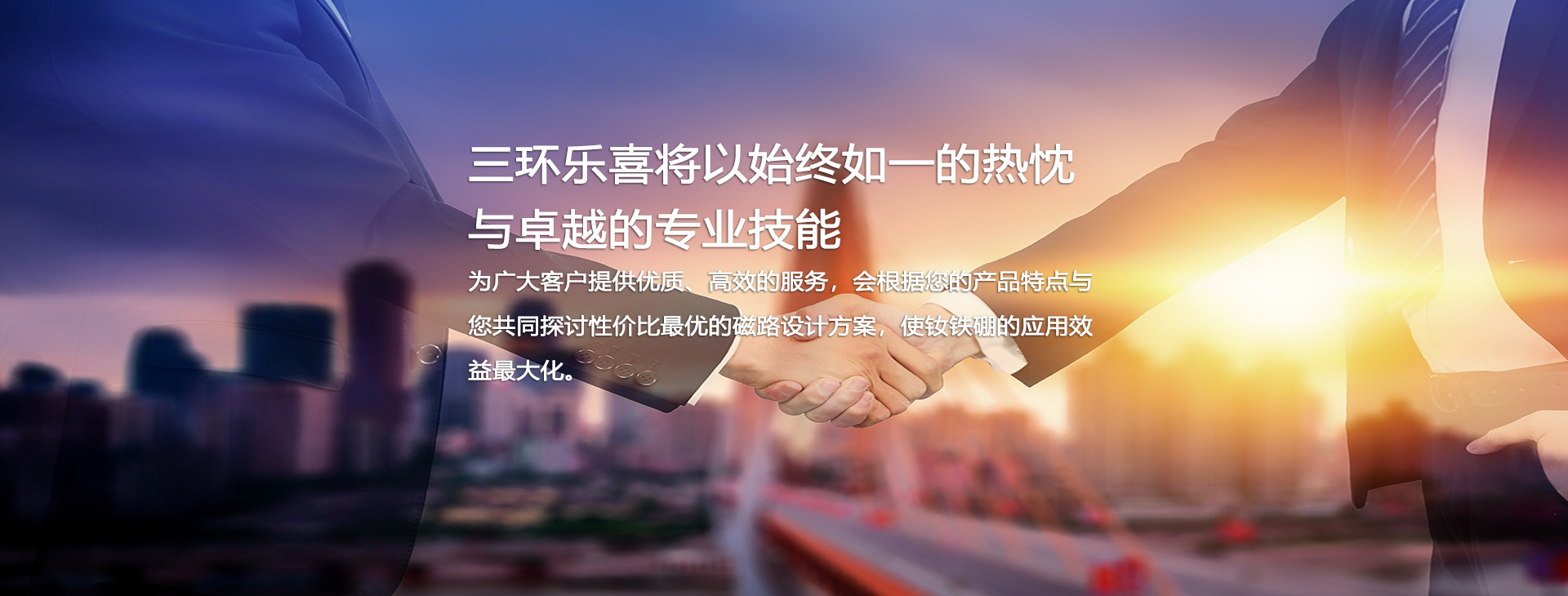 三環(huán)樂喜新材料有限公司,成立于1990年,控股股東中科三環(huán)(股票代碼:000970)為中國稀土永磁材料產(chǎn)業(yè)的代表企業(yè)、全球特大的釹鐵硼永磁體制造商之一。自成立以來,公司一直致力于研發(fā)、生產(chǎn)、銷售中、高品質(zhì)燒結(jié)釹鐵硼,年生產(chǎn)能力超過6000噸,是中科三環(huán)的重要生產(chǎn)基地。